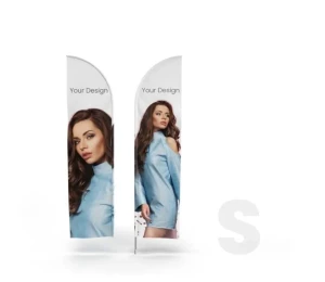 Dwustronna beachflaga Feather Flag Standard S – kompaktowa i mobilna reklama na maszcie 280 cm z nadrukiem sublimacyjnym na materiale Blackback PRO. Wysokość z flagą 245 cm, grafika 71 x 195 cm x 2 strony, lekka i łatwa w montażu.
