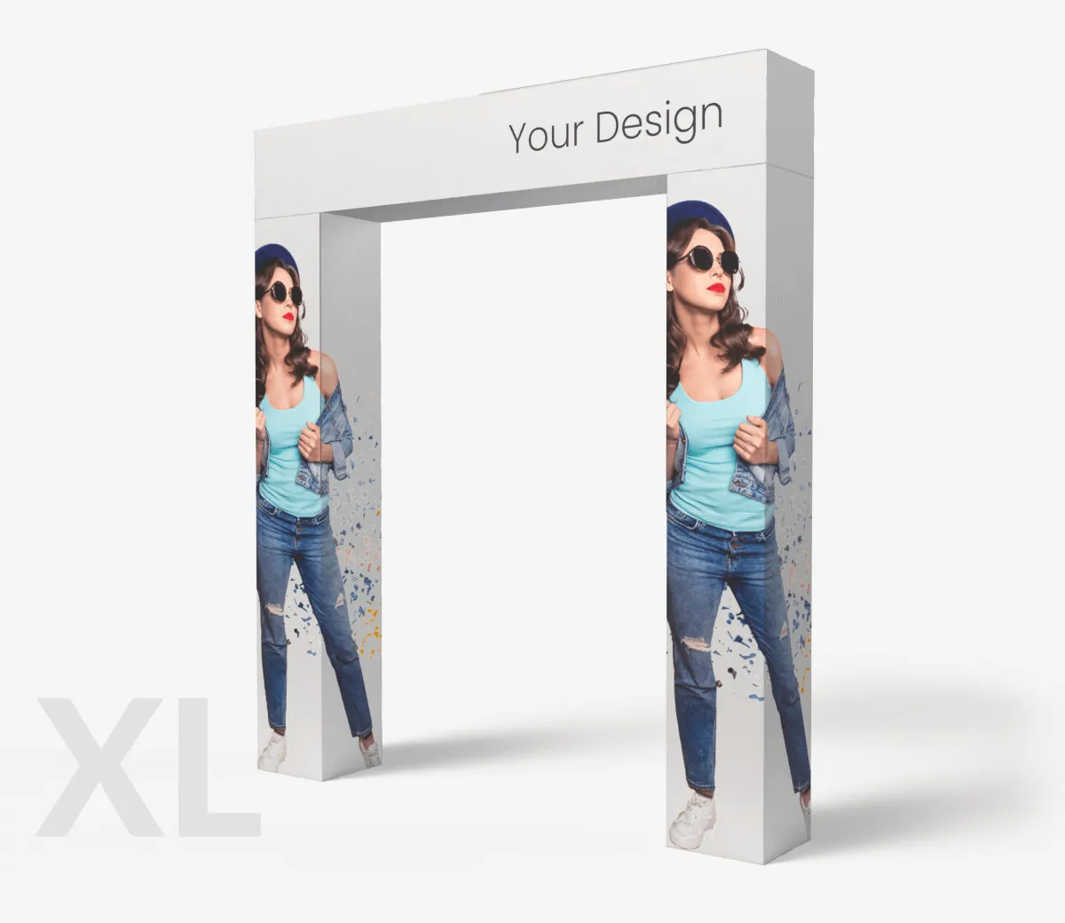 Wykonana z wysokiej jakości białej tektury EB, brama XL łączy lekkość z trwałością. Idealna do kampanii promocyjnych, prezentacji produktowych, zabudowy targowej i eventowej. Druk w technologii UV na powierzchniach wewnętrznych i zewnętrznych zapewnia pełną personalizację i estetyczne wykończenie w półmacie.