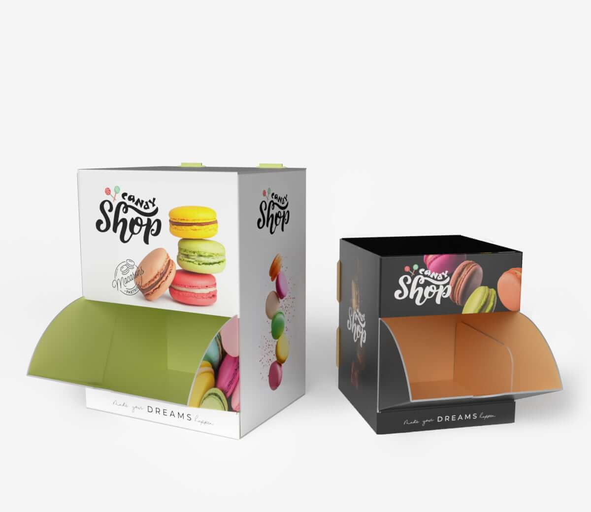 Display Two to kompaktowe opakowanie z tektury falistej E z praktyczną wysuwaną szufladką, idealne do prezentacji drobnych produktów, słodyczy, próbek i gadżetów reklamowych. Dostępna jest możliwość zadruku także wewnątrz pudełka.