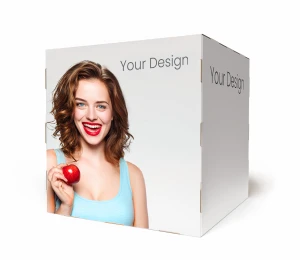Kostka reklamowa z zamkami 70 × 70 × 70 cm – STRONG (tektura EB) – ekspozycja XXL o najwyższym prestiżu